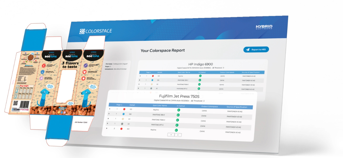 O Colorspace é um produto exclusivo que combina os poderosos produtos de gerenciamento de cores da ColorLogic, com a automação do fluxo de trabalho CLOUDFLOW da Hybrid Software, para proporcionar uma reprodução de cores consistente e precisa em diversos substratos e tecnologias de impressão.