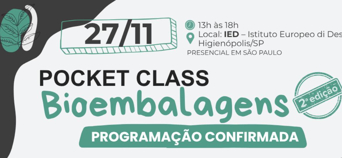 No dia 27 de novembro, das 13h às 18h, o Portal Conecta Verde realiza a Pocket Class Bioembalagens, no Istituto Europeo di Design (IED Brasil), em São Paulo (SP). O encontro presencial reunirá especialistas, empresas e profissionais da cadeia produtiva de embalagens para debater um dos temas mais promissores do setor: as bioembalagens e suas possibilidades dentro da transição para uma economia mais circular e sustentável.